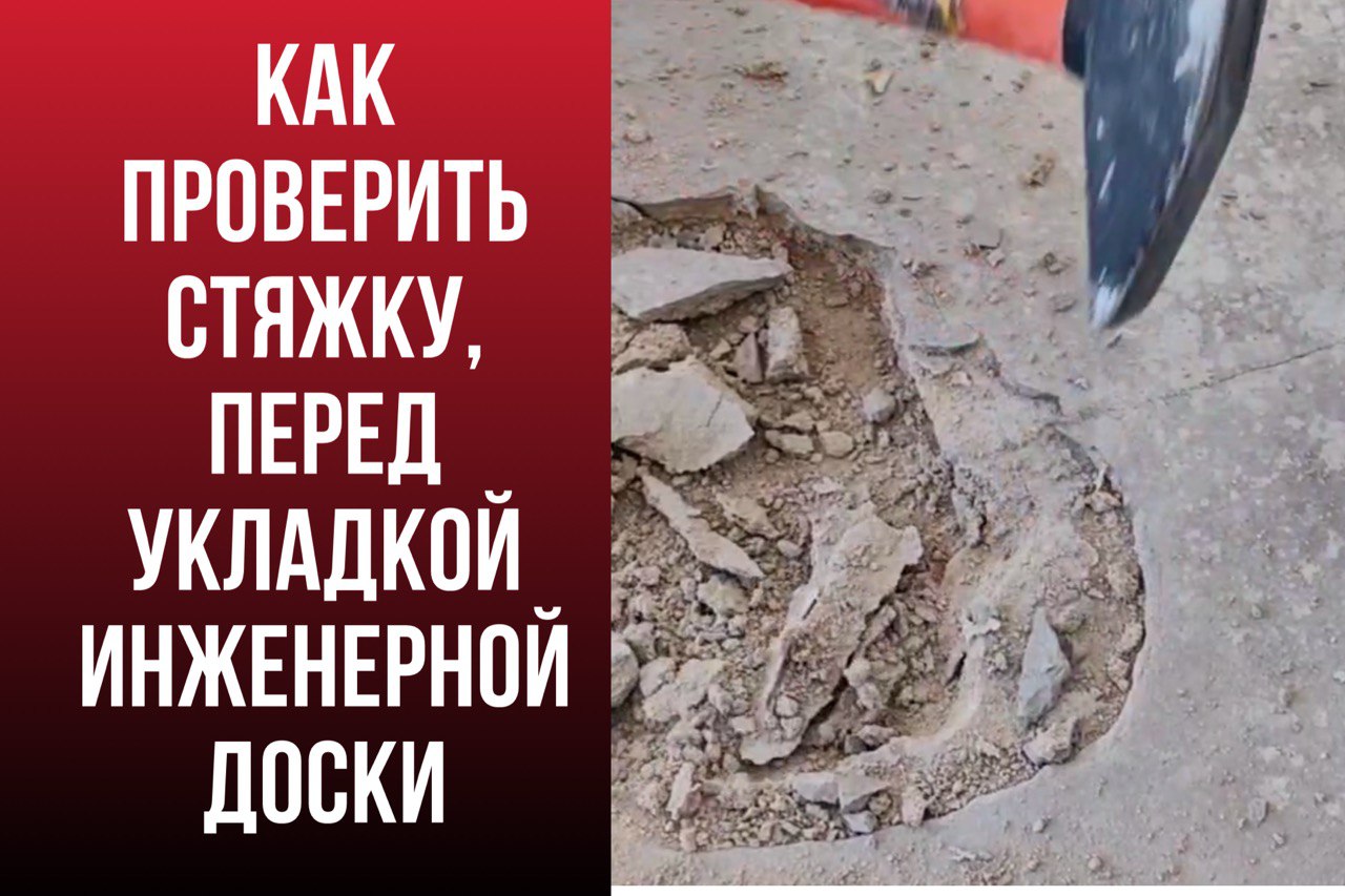 Про прочность. Не буду Вас пугать цифрами и СНиПами, скажу своими словами, про цифры все рассказали в видео. Прочность стяжки очень Важна если Вы собрались клеить на нее доску. Стяжка не только не должна быть рыхлой, бухтеть, не иметь трещин, но она должна еще и выдерживать определенную нагрузку на отрыв. В противном случае, если стяжка окажется не достаточно прочной, через некоторое время после того, как вы приклеите на нее доску, доска под воздействием изменения влажности будет расширяться или сужаться, создавая напряжение в клеевом слое и легко может оторвать плохую стяжку и начать бухтеть или хрустеть у Вас под ногами. Прочность стяжки проверяется различными специальными приборами, а иногда и лабораторно. Но скажу честно даже у укладчиков редко у кого есть дорогостоющие приборы и в 90% случаев полную проверку стяжки не делают. Если речь идет про массивную доску (то есть когда цельное дерево) и особенно с досками крупного размера, то я точно бы не стал рисковать и стяжку надо проверять очень тщательно со всеми приборами, так как массив может очень сильно выкручивать и риски, что его оторвет очень велики. Но инженерная доска за счет фанеры более стабильна и тут в целом, если Вы делаете укладку самостоятельно и для себя стяжку можно проверить простыми способами. Какими? Ну во-первых осмотреть визуально на наличие трещин и однородность цвета стяжки, так же при помощи риц-теста (можно царапания гвоздем) то есть посмотреть на сколько она рыхлая, начертить на ней решетку и посмотреть как разрушаться линии на пересечении. Потом обязательно простучать при помощи молотка под углом, так вы можете понять нет ли где отслоений и вообще насколько стяжка крепкая. Еще я бы обязательно проверил прочность стяжки при помощи склерометра это все таки даст более точную информацию о стяжке. Ну и вот если при таких проверках вопросов у Вас не возникло, то скорее всего инженерную доску можно укладывать, ну а если сомнения все таки есть, то лучше все же обратиться к людям у которых есть соответствующие приборы и которые более детально проведут диагностику. Еще я бы не рекомендовал клеить доску на наливной пол на гипсовой основе, даже если он приличной прочности и вроде похоже, что выдержит, учитывайте, что гипс боится влаги и если она вдруг появиться в стяжке, то такое основание легко может разрушиться.